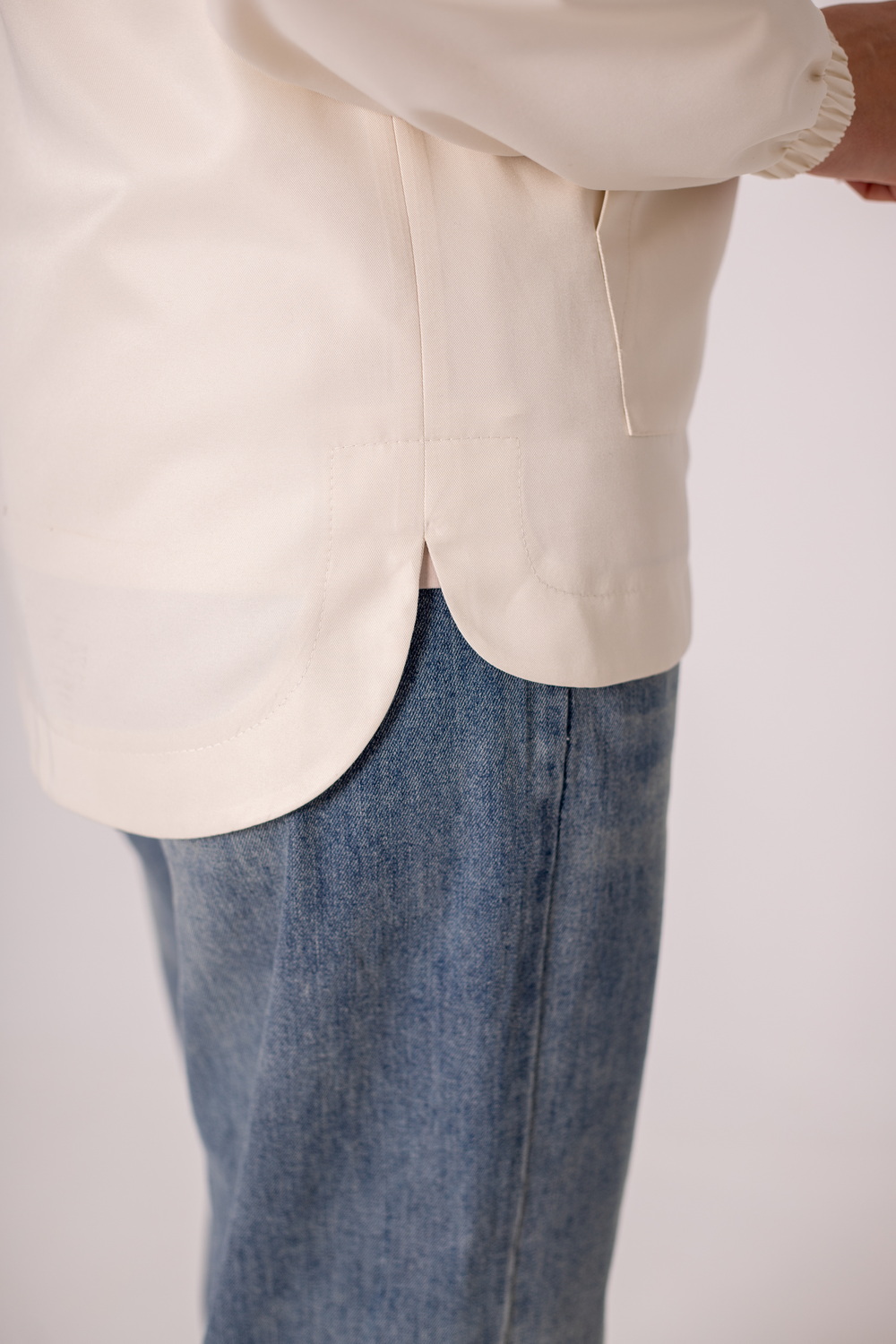 Рукав на резинці. По пілочці та спинці складка.