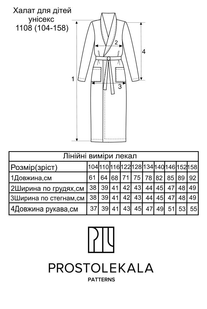 1.Документ з тех рисунком, таблицею з замірами по лекалу готового виду (довжини та ширини),